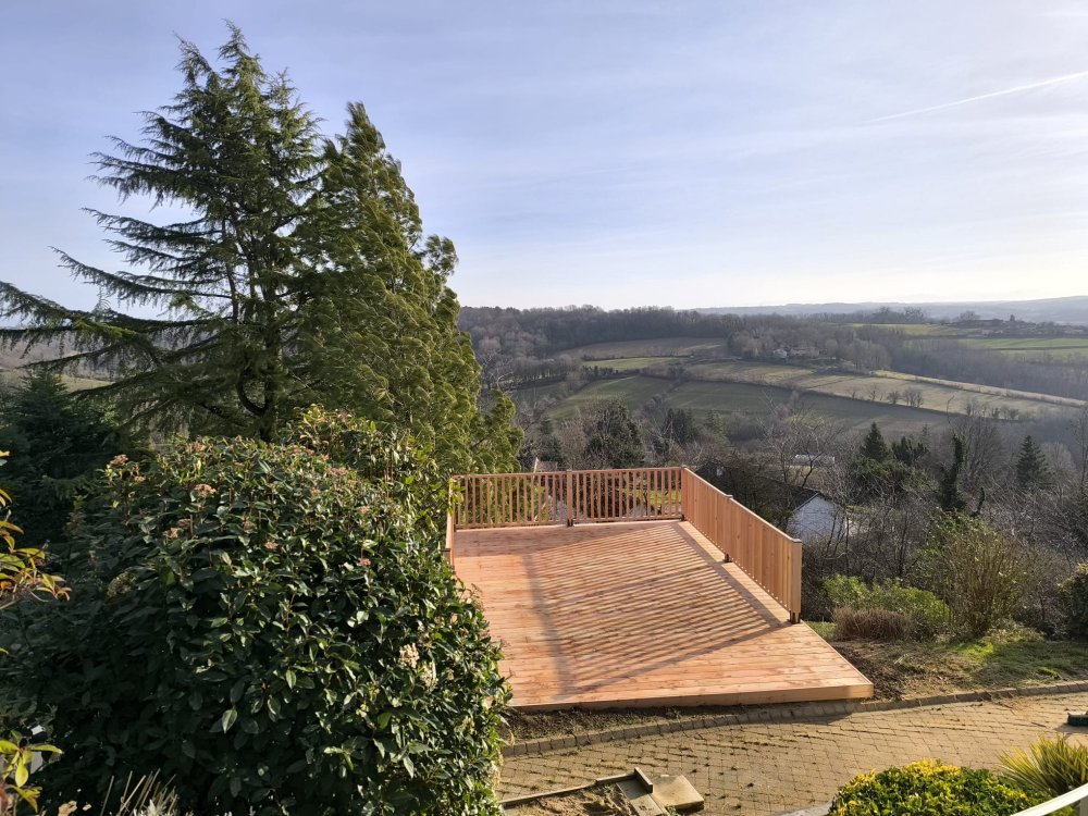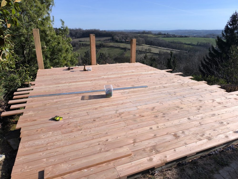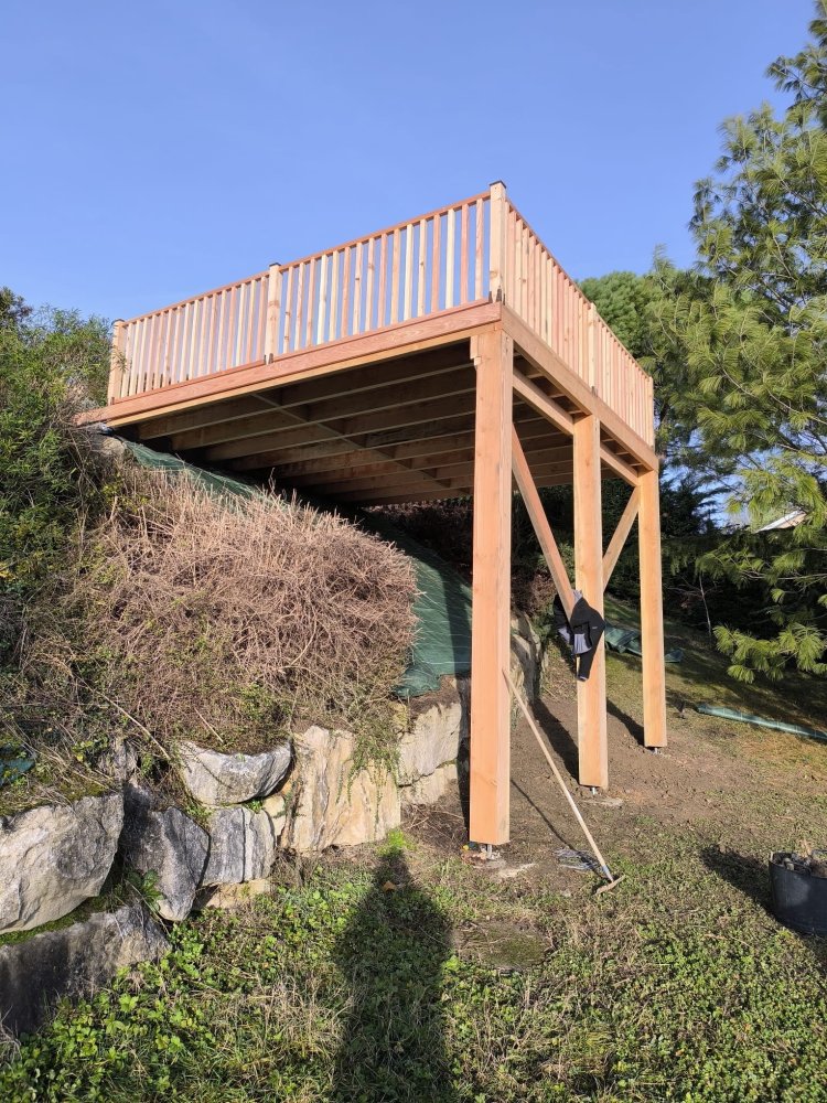 GREEN TOUCH vous propose l'aménagement de vos extérieurs avec la création d'une terrasse Douglas sur pilotis à Bourgoin Jallieu .